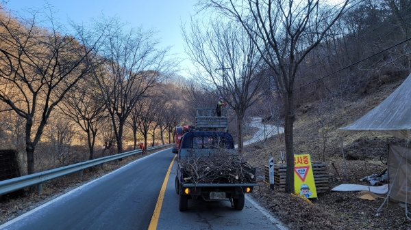 [충청뉴스큐] 보은군은 보청천 중동교 ~ 학림리 구간의 벚나무, 내북면 법주리 벚나무, 수한면 노성리 ~ 율산리 구간 이팝나무 등 가로수 1,152본에 대한 가지치기 사업을 시행한다고 지난 28일 밝혔다.