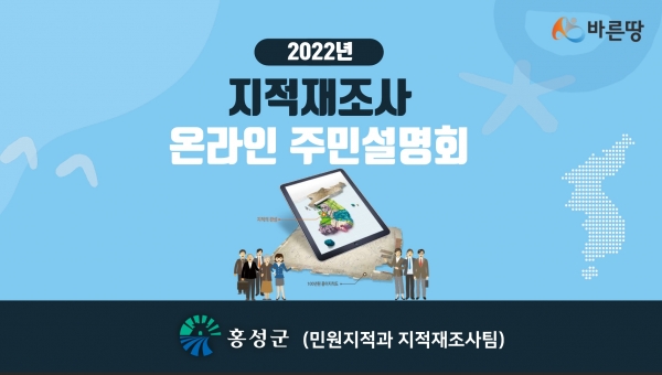 [충청뉴스큐] 홍성군은 코로나19 확산으로 2022년 지적 재조사 지구에 대한 대면 주민설명회 개최가 어려워짐에 따라 지난 25일 온라인 주민설명회를 실시했다고 밝혔다.