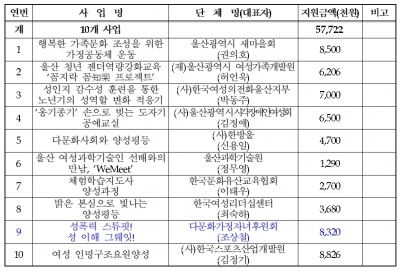 울산시 관계자는 “양성평등 실현을 위한 우수하고 다양한 사업을 발굴해 추진할 수 있도록 많은 단체의 적극적인 참여를 기대한다”라고 말했다.