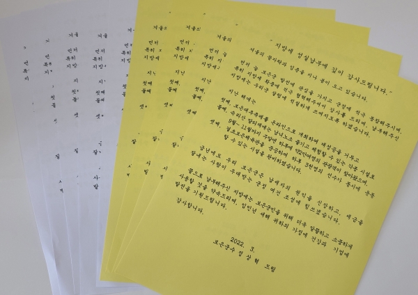 서한문은 보은군 관내에 주소지 및 사업장을 두고 최근 3년간 군세를 연간 30만원 이상 기한 내 납부해 지방재정 확충에 기여한 납세자에게 발송했다.