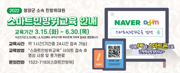 [충청뉴스큐] 청양군이 코로나19 상황 때문에 올해도 민방위대원 1,117명에 대해 온라인교육을 진행한다고 29일 밝혔다.