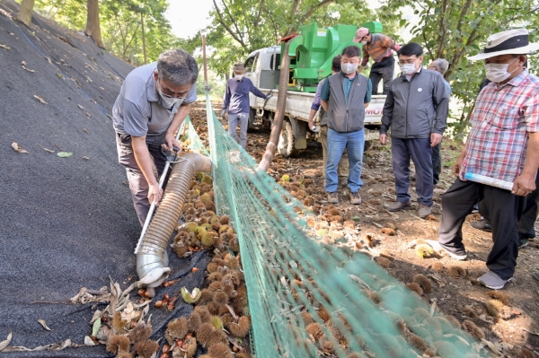 특히 농촌인구 고령화와 코로나19 장기화 등으로 밤 수확철 일손 부족이 심각한 상황을 고려해 지난해 밤 수집기 14대를 긴급 보급했으며 일손돕기창구를 통해 매년 100여 농가에 인력을 지원하고 있다.