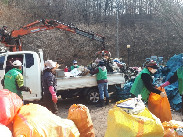 보은읍 새마을지도자남녀협의회는 60명의 회원이 참여한 가운데 보은대교 하상주차장에서 읍내 50개 마을에서 약 8톤가량의 고철, 헌옷, 폐지, 빈병, 폐비닐 등 자원을 수거해 분리하며 구슬땀을 흘렸다.