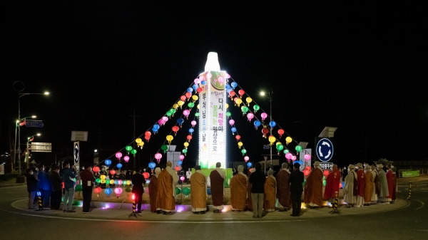 청양군불자연합회가 주최하고 청양군이 후원한 점등식에는 70여 불자들이 참석했으며 연등탑은 청양고등학교 사거리 회전교차로 중앙에 설치됐다.