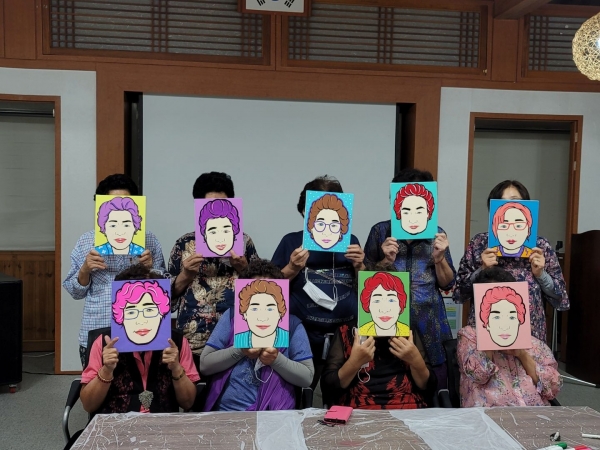 미술교실에서는 팝아트 기법을 활용해 ‘내가 사는 마을과 이웃’, ‘나와 가족’을 주제로 어르신들의 미술활동을 지원한다.