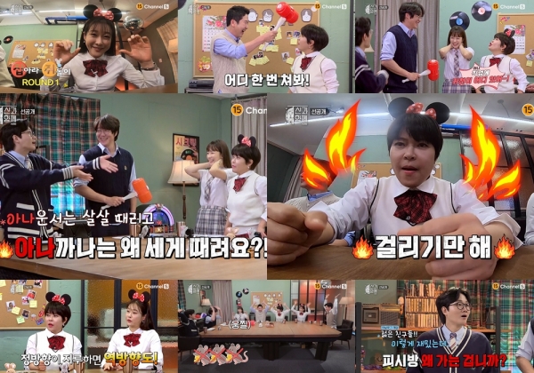 성시경이 “아나운서를 어떻게 세게 때려요~”고 말하자, 조혜련은 “나는 아나운서 아니라서 세게 맞냐?”, “직업에 귀천이 어디 있어?”며 팽팽하게 맞섰다.
