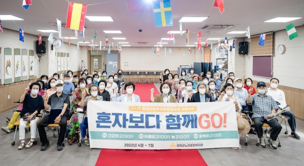 [충청뉴스큐] 청양군노인종합복지관이 지난 15일 복지관 대강당에서 ‘혼자보다 함께 GO’ 사업 참여자와 예비 참여자 40여명이 참석한 가운데 1기 수료식을 개최했다.