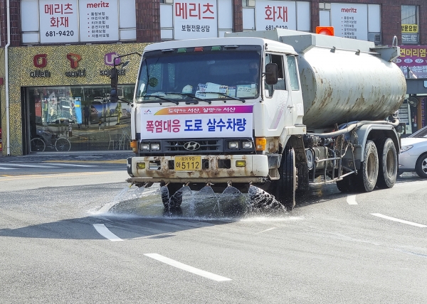 [충청뉴스큐] 충남 서산시가 폭염으로 인한 온열 피해를 예방하고 시민 체감온도 저감을 위해 살수차를 운행한다.