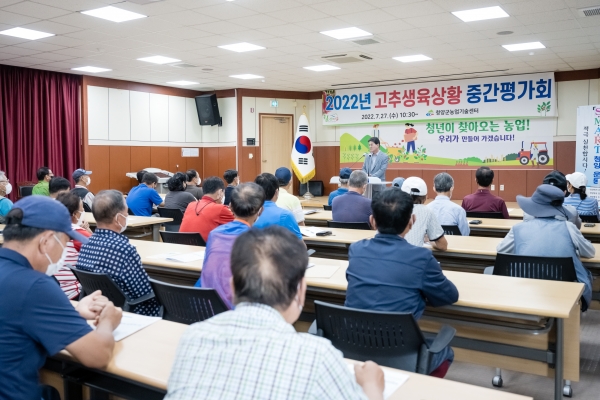 [충청뉴스큐] 청양군농업기술센터가 지난 27일 대강당에서 고추 연구회원 등 재배 농가 60여명과 함께 올해 고추 생육상황을 점검한 결과 현재까지 양호한 상태인 것으로 나타났다.