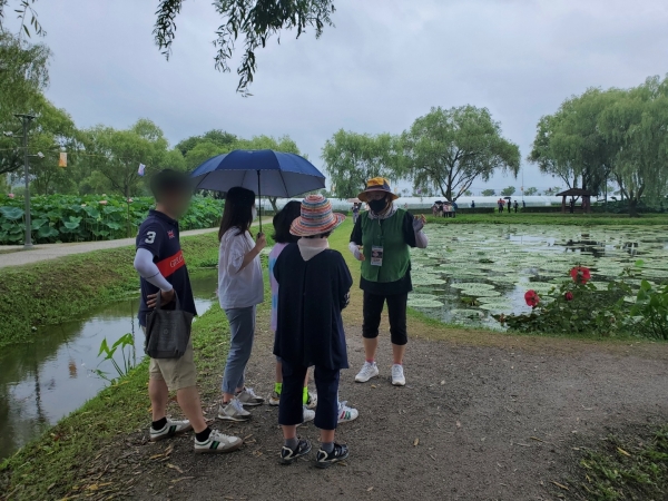 지난 주말 대전에서 왔다는 60대 관광객 부부는 “더운 날씨에 관광객 바로 옆 원두막에서 대기하고 있으면서 해설을 듣고 연꽃을 보니 연꽃이 새롭고 달리 보인다”며 “궁남지와 연꽃 설명이 담긴 부채까지 선물로 받아 너무 행복하다”는 소감을 전했다.