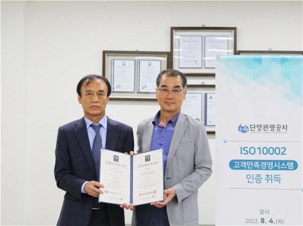 [충청뉴스큐] 단양관광공사는 지난 4일 한국생산성본부인증원으로부터 고객만족경영시스템의 국제 표준 인증을 취득했다고 밝혔다.