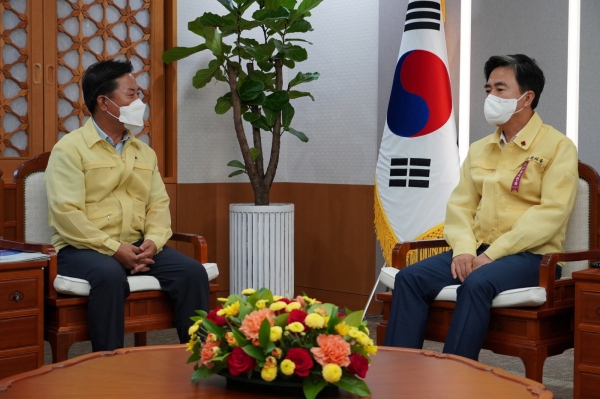 박정현 군수는 “특별재난지역 선포를 위해 힘써주신 김태흠 지사님에게 감사 인사와 함께 지역 현안에 대한 지원을 요청드리기 위해 방문했다”며 “성심을 담아 긍정적인 답을 내주신 김태흠 지사님께 감사드린다”고 전했다.
