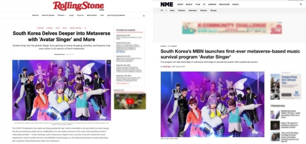 AR 기술과 메타버스 기술이 결합돼 만들어진 최초의 TV 방송 콘텐츠인 ‘아바타싱어’의 등장에 해외 유수 매체들도 소식을 전하며 관심을 표하고 있다.