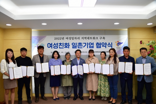 [충청뉴스큐] 부여군이 여성이 일하기 좋은 기업환경 조성을 위해 지난 15일 여성친화 일촌기업 협약식을 개최했다.