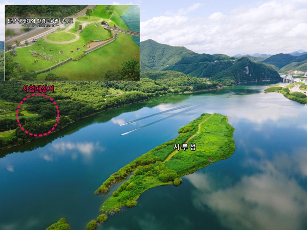 한강수계 단양 생태체험·환경교육관 조성사업은 단양군 적성면 애곡리 산18-19번지 일원에 조성될 예정으로 친환경 생태환경 교육관은 600㎡의 규모이며 친환경 생태건축 기법을 도입해 냉난방 에너지를 최소화하고 남한강 생태계 체험 및 환경·문화·역사 교육장으로 활용해 신재생 에너지 사용 확대 등 탄소중립 교육 실천의 중요성 인식을 확립할 예정이다.