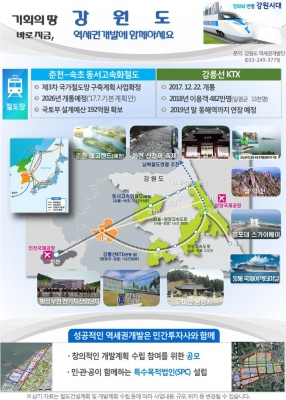 [충청뉴스큐] 강원도에서는 철도노선과 연계한 역세권의 성공적 개발로 획기적인 지역경제 활성화를 도모하기 위해 동서고속화철도 및 강릉선 KTX 역세권 개발 투자유치 활동을 전개하기로 했다.