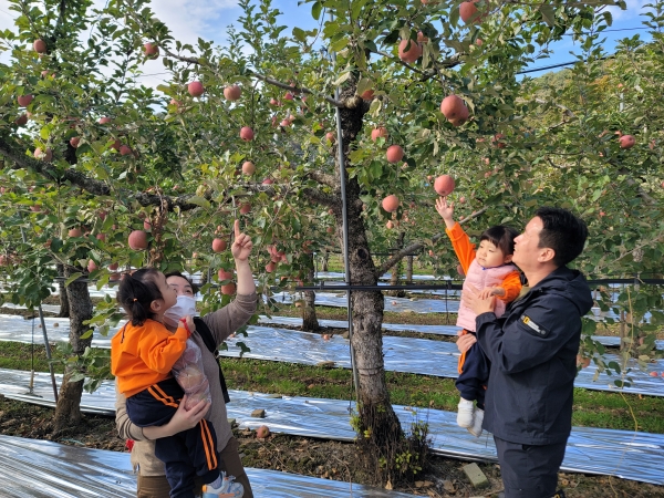 이 행사는 지난 21일부터 23일까지 3일간 산외면 산대리에 위차한 신개울 농장을 비롯한 군내 4개 사과 체험농장에서 가족, 친구 등 전국에서 1,100명이 참여해 사과 수확은 물론 농장별 특색있는 체험으로 이뤄졌다.