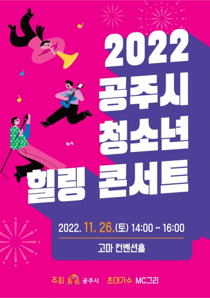 [충청뉴스큐] 공주시는 오는 26일 오후 2시 아트센터 고마 컨벤션홀에서 수험생들을 위한 ‘청소년 힐링 콘서트’를 개최한다고 밝혔다.