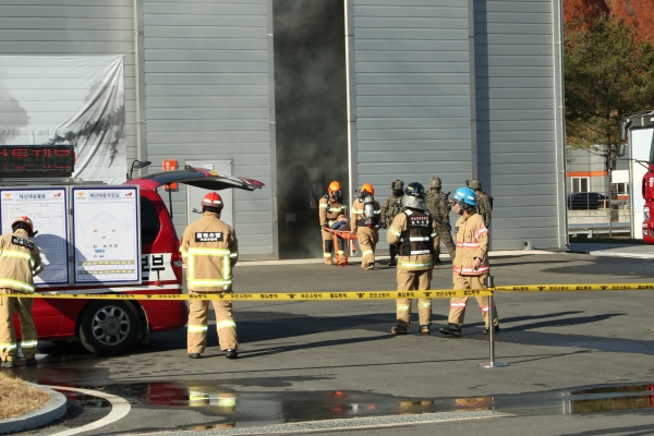 지난 18일 한화 방산 보은사업장에서 지진 및 화재 재난 상황을 가상한 현장훈련을 실시해 재난사고 현장에서 발빠른 대응 조치 등 재난 발생 시 대응 활동 내용으로 진행돼 재난 대응 역량을 강화했다.