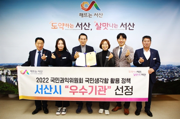 [충청뉴스큐] 충남 서산시는 국민권익위원회가 주관하는 ‘국민생각함 활용 정책 우수사례 선정평가’에서 우수기관으로 선정됐다고 30일 밝혔다.
