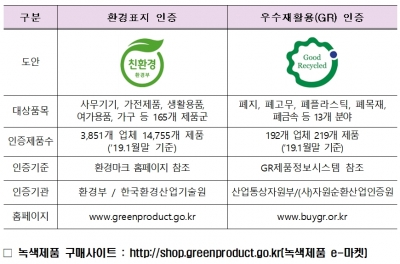 현재 건설자재, 사무기기, 가전제품 등 1만 5000개의 제품이 녹색제품으로 등록되어 있다.