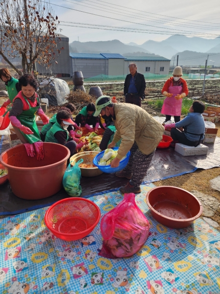 먼저 지난 7일 산외면 새마을지도자남녀협의회는 남녀지도자회원 40명이 참여한 가운데 직접 생산한 배추 300포기로 정성들여 김장김치를 담가 면내 경로당 27개소와 게이트볼장, 그라운드 골프장, 불우한 이웃에 김장김치 20kg씩 전달하고 행복 1% 나눔 후원 모금으로 구입한 생활용품도 함께 전달했다.