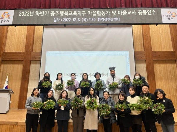 [충청뉴스큐] 공주시는 지난 8일 공주환경성건강센터 대강당에서 관내 마을활동가 및 마을교사, 교육청 관계자 등 30여명이 참여한 가운데 공동연수를 개최했다.