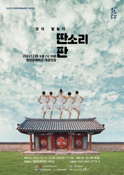 [충청뉴스큐] 청양군이 12월 기획공연작으로 광대탈놀이 ‘딴소리 판’을 오는 28일 저녁 7시 30분 청양문화예술회관 대공연장 무대에 올린다.