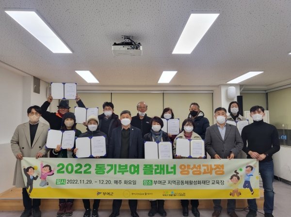 [충청뉴스큐] 부여군 지역공동체 활성화재단이 운영하는 마을만들기 지원센터가 최근 부여군 지역공동체 활성화재단 교육장에서 2022년 동기부여 플래너 양성과정 수료식을 진행했다.