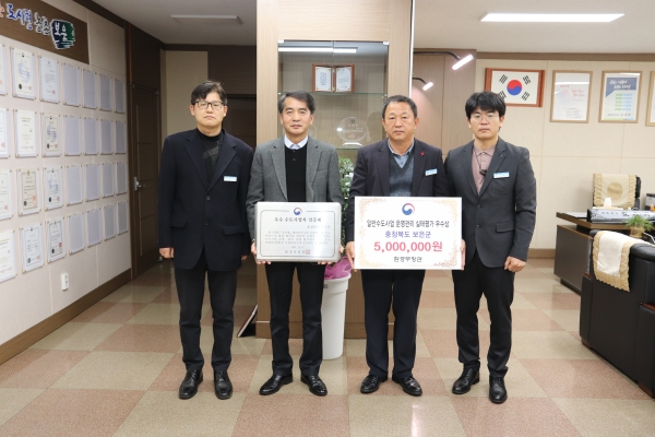 [충청뉴스큐] 보은군은 환경부가 주관한 2022년도 일반수도사업 운영·관리 실태평가에서 우수기관에 선정돼 인증패를 받았다고 9일 밝혔다.