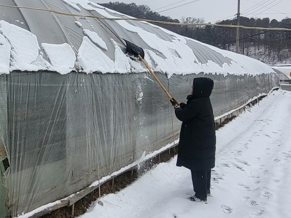 적설량이 너무 많아 시설 붕괴가 우려될 때는 비닐 찢기로 더 큰 피해를 막아야 한다.