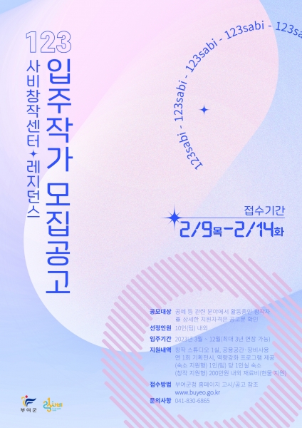 [충청뉴스큐] 부여군이 오는 14일까지 123사비 창작센터·레지던스에 입주할 역량 있는 창작자를 공개 모집한다.