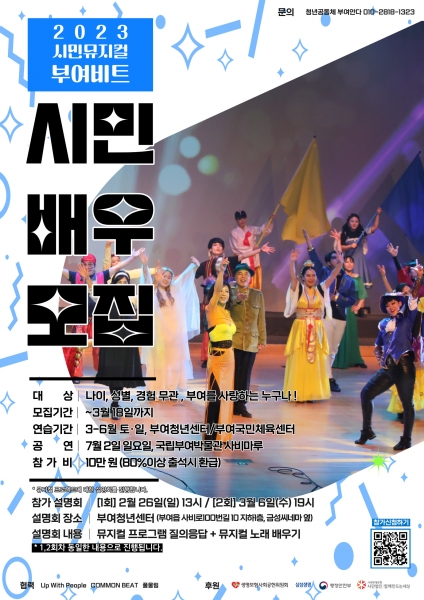 [충청뉴스큐] 부여군 청년문화예술 공동체 ‘부여안다’가 ‘2023 시민뮤지컬 부여비트’를 함께할 배우를 이달 18일까지 모집한다.
