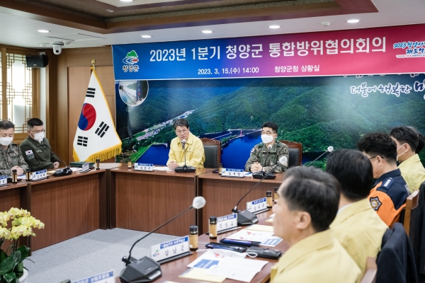 [충청뉴스큐] 청양군이 지난 15일 군청 상황실에서 지역 통합방위 태세를 강화하기 위한 1분기 통합방위협의회를 열고 올해 주요 훈련계획을 논의했다.