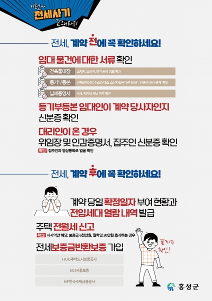 [충청뉴스큐] 홍성군이 최근 사회문제가 되는 전국적인 부동산 가격 하락으로 인한 깡통전세 및 전세 사기 등으로 피해를 보는 군민이 없도록 홍보에 나섰다.
