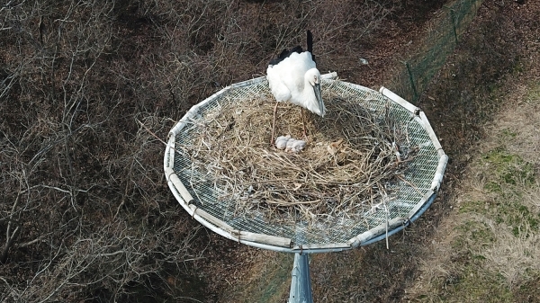 이번에 새끼를 부화한 황새 부부는 겨우내 서산버드랜드 황새둥지탑에 보금자리를 차리고 분주히 둥지 재료를 물어오며 번식에 대한 기대감을 높였다.