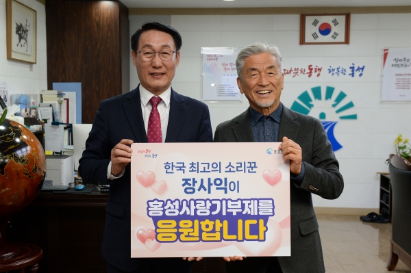 [충청뉴스큐] 홍성군 출신 대한민국 대표 소리꾼 장사익 선생이 지난 27일 홍성군을 직접 방문해 이용록 홍성군수와 기부금 기탁식을 갖고 홍성군 고향사랑기부제에 응원을 전했다.