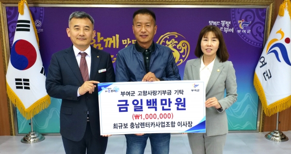 [충청뉴스큐] 부여군은 지난 31일 충남렌터카사업조합 최규보 이사장이 부여군 고향사랑기부제에 기부금 100만원을 쾌척했다고 밝혔다.