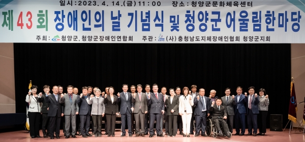[충청뉴스큐] 청양군이 지난 14일 청양읍 소재 문화체육센터에서 청양군장애인연합회 주최, 충남지체장애인협회 청양군지회 주관으로 제43회 장애인의 날 기념식을 겸한 어울림 한마당 축제를 열었다.