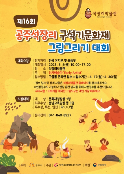 [충청뉴스큐] 공주시가 석장리구석기 축제가 개막하는 오는 5월 5일 석장리박물관 일원에서 제16회 석장리 구석기문화재 그림그리기 대회를 개최한다.