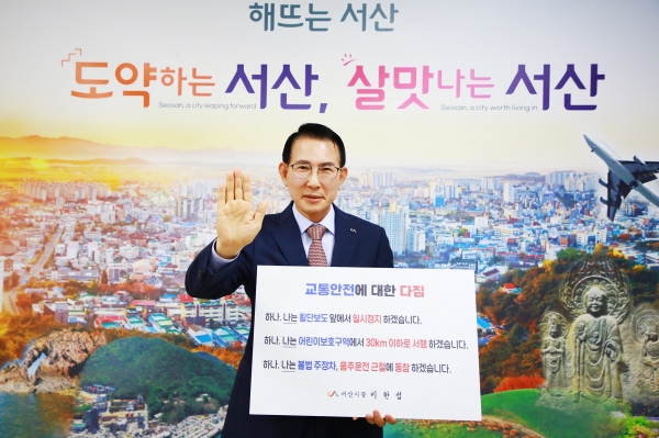 이완섭 서산시장은 “안전한 서산시를 만들기 위해 운전자 안전 운전 의식 향상과 법규 준수를 위한 공감대 형성에 힘을 쏟을 것”이라며 “교통안전 생활 실천 문화 확산을 위해 시민분들께서도 교통안전 릴레이 캠페인에 참여해 주시길 바란다”고 말했다.