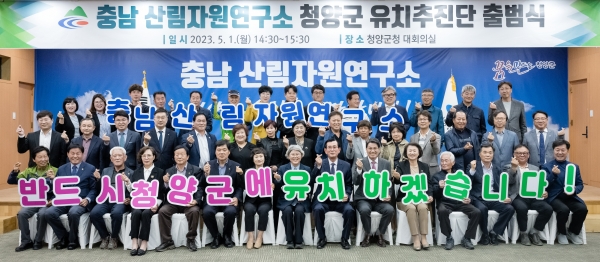 [충청뉴스큐] 청양군이 지난 1일 군청 대회의실에서 유치단원 60여명이 참석한 가운데 ‘충청남도 산림자원연구소 청양군 유치추진단’ 출범식을 갖고 본격적인 활동에 들어갔다.