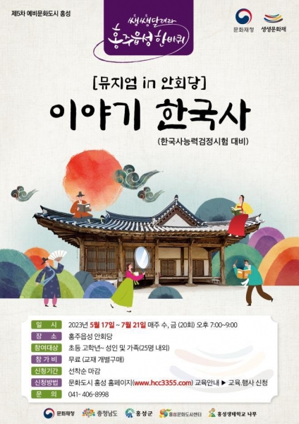 [충청뉴스큐] 홍성군이 홍성생태학교 나무에서 주관하는 ‘안회당, 이야기 한국사’ 프로그램 참가자를 모집한다.