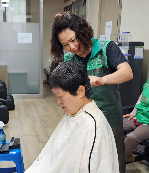 이날 이미용봉사는 거동인 불편한 노인과 장애인 등 모두 20가정을 새마을지도자협의회 회원들이 방문해 회남면행정복지센터로 직접 모셔와 머리커트, 염색 등 머리 손질과 간식도 같이 전달하며 건강과 안부도 같이 확인했다.