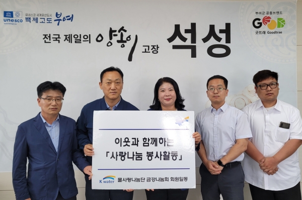 조성준 석성면장은 “한국수자원공사의 지속적인 관심과 따뜻한 사랑 나눔에 감사를 드린다”며 “앞으로도 우리 면의 지역사랑 기관으로 자리매김함으로써 다양한 나눔활동을 통해 지역사회와 상생해 큰 힘이 되어주시길 바란다”고 말했다.