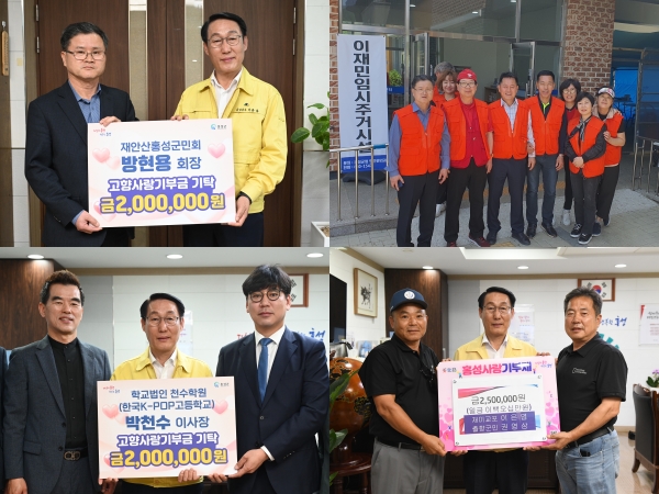 이용록 홍성군수는 “몸으로는 멀리 있어도 마음으로는 항상 응원해주시는 출향인 여러분 모두에게 감사드린다”며 “홍성사랑기부제에 보내주시는 성원에 힘입어 군민들과 따뜻하게 동행하며 행복한 홍성 건설에 최선을 다하겠다”고 감사와 다짐을 밝혔다.
