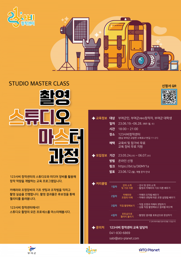 [충청뉴스큐] 부여군이 카메라와 조명 장비의 기초 셋팅과 조작법을 익히고 미디어 창작 역량을 개발하는 ‘촬영 스튜디오 마스터 클래스 과정’프로그램 참가자를 모집한다.