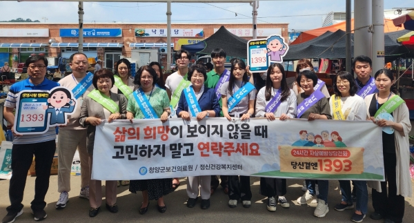 이날 보건의료원은 청소년 상담복지센터, 한국농어촌공사 청양지사, 충남도립대학교, 청양군 드림스타트, 청양군가정성통합상담센터, 청양교육지원청 위 센터, 청양예통합돌봄센터와 함께 시장을 찾은 주민들의 관심과 협조를 호소했다.