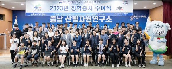 [충청뉴스큐] 재단법인 청양사랑인재육성장학회는 지난 16일 청양군청 대회의실에서 2023년도 장학증서 수여식을 개최했다.