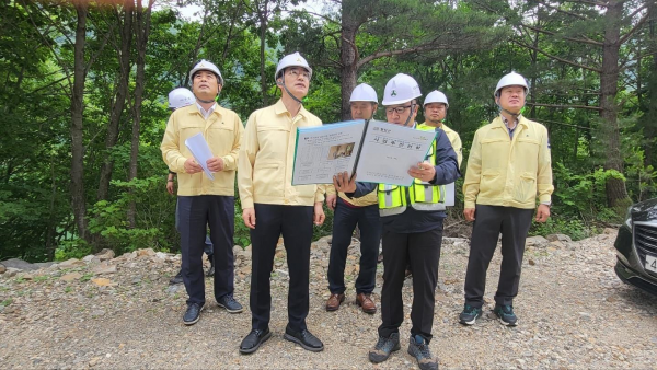 이날 평창군 수하지구 급경사지 공사현장을 방문한 김명선 부지사는 수해방지대책과 안전시설 설치현황 등을 살펴보고 우기대비 안전관리에 더욱 힘써달라는 당부와 함께 현장 직원들을 격려했다.